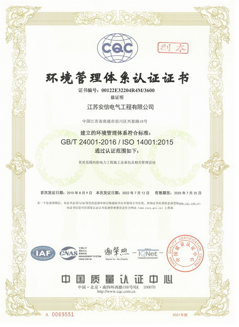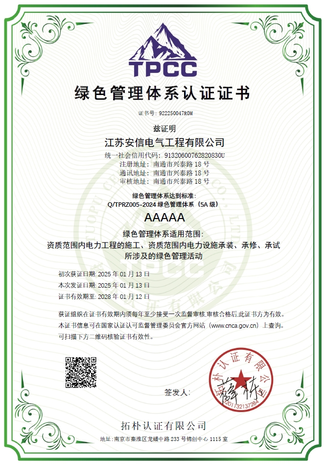 在創(chuàng)業(yè)之初,公司就堅持高起點的戰(zhàn)略思路,廣納賢才,集聚行業(yè)精英,創(chuàng)新發(fā)展,做優(yōu)企業(yè)品牌。現(xiàn)已取得:承裝二級、承修二級、承試二級,電力工程施工總承包二級,輸變電工程專業(yè)承包二級,建筑工程施工總承包二級,建筑機電安裝專業(yè)承包二級,地基基礎專業(yè)承包二級資質證書,并通過了質量、環(huán)境、職業(yè)健康和安全管理體系認證,確保各項工作有序管控。